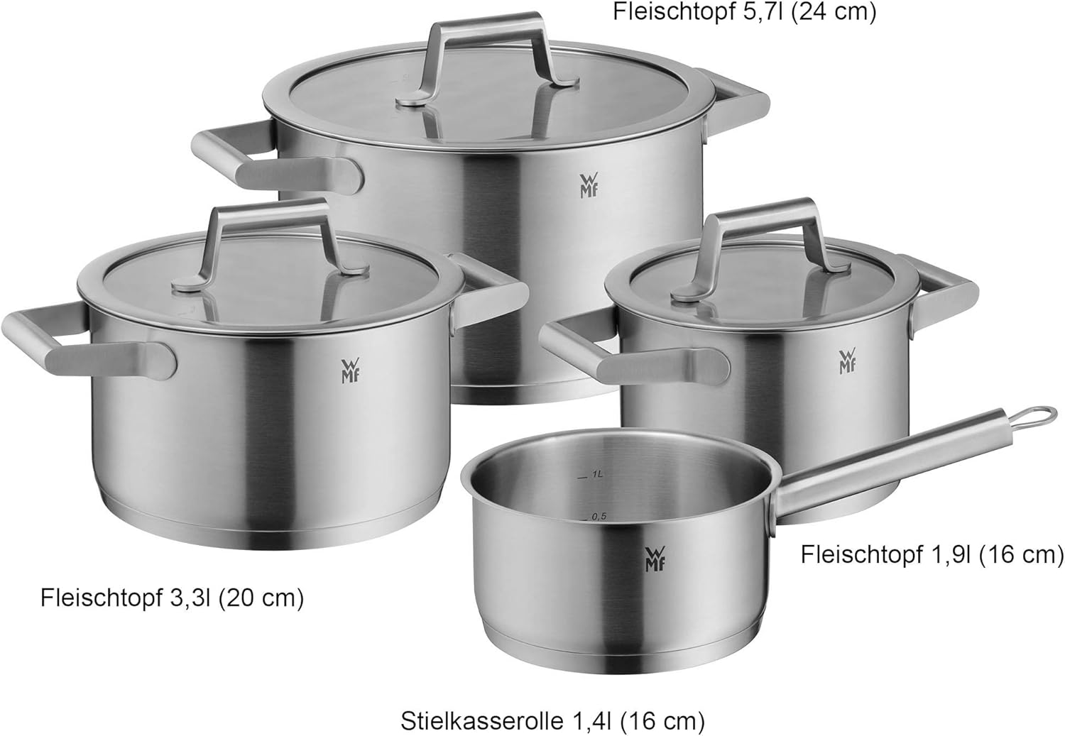 Wmf 732146040 Comfort Line Topfset Induktion 4 Teilig Cromargan Matte Stainless Steel Pots Set With Glass Lid Scale Stackable Uncoated 18 10 Home Kitchen Amazon Com